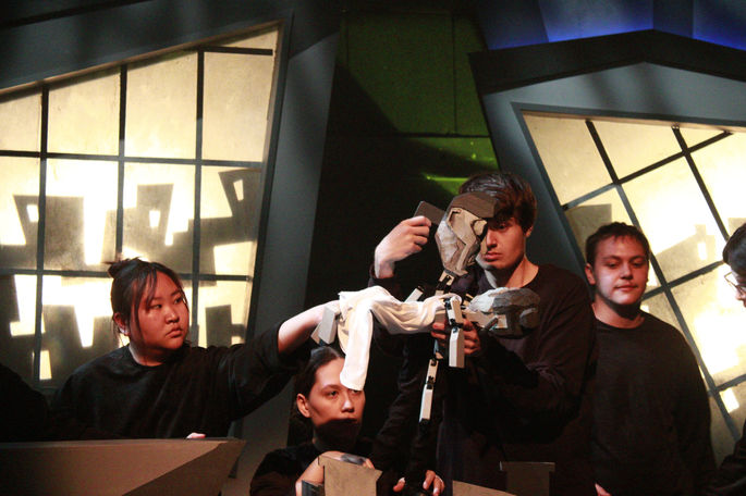 Based on the famous German Expressionist film "The Cabinet of Dr. Caligari" (1921). It is considered one of the first horror films and one of the first murder mysteries. UNC Charlotte's adaptation was a workshop production that was part of the theatre department's 2023 Puppetry class. This show was the first time I had ever worked with puppets, and it opened my eyes to the beautiful world of puppetry. As a Puppeteer in the show, I learned how to make the puppets breathe and move realistically (which is a lot harder than it looks). The puppets, scenery, and script were made by our director and professor, Tom Burch. The cast and crew were phenomenal, and they were a joy to work with!